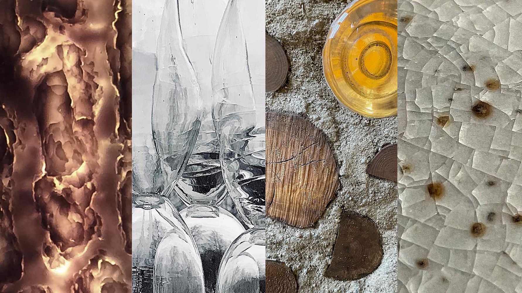 Konsthantverkarna Camilla Caster, Christina Larsson, Eva Juneblad och Eva-Karin Sandqvist utgör tillsammans kooperativet Röbäck glas och lera som håller hus i Kulturmejeriet i Röbäck, Umeå. De har alla över trettio års erfarenhet av hantverkskunnande inom sina respektive fält och är utbildade nationellt och internationellt. I sina praktiker varvar de tillverkning av bruksföremål med konstnärligt arbete. Det här är deras första gemensamma utställning.